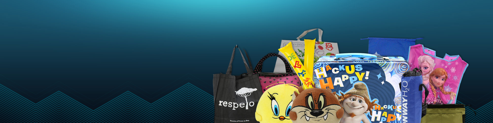 Plumas, paraguas, pelotas, bolsos ecológicos, peluches, hacemos todo tipo de promocionales.